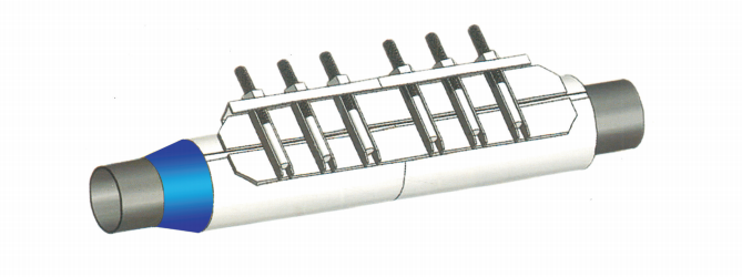 搭接式无限延长式修补器,可使用多个修补器进行搭接,完美的解决了漏点大,难修复的问题,其独特的搭接设计,可以有效保证密封效果,快速完成管道的修复。该产品密封胶板采用独特的搭接网格结构,对于漏洞较多的管道,可以直接使用多个修补器搭接。网格部分可以起到对泄露介质层层减压的作用,搭接式斜边设计便于两套产品的重合时充分接触,形成整体式样,也有利于现场施工人员快速操作